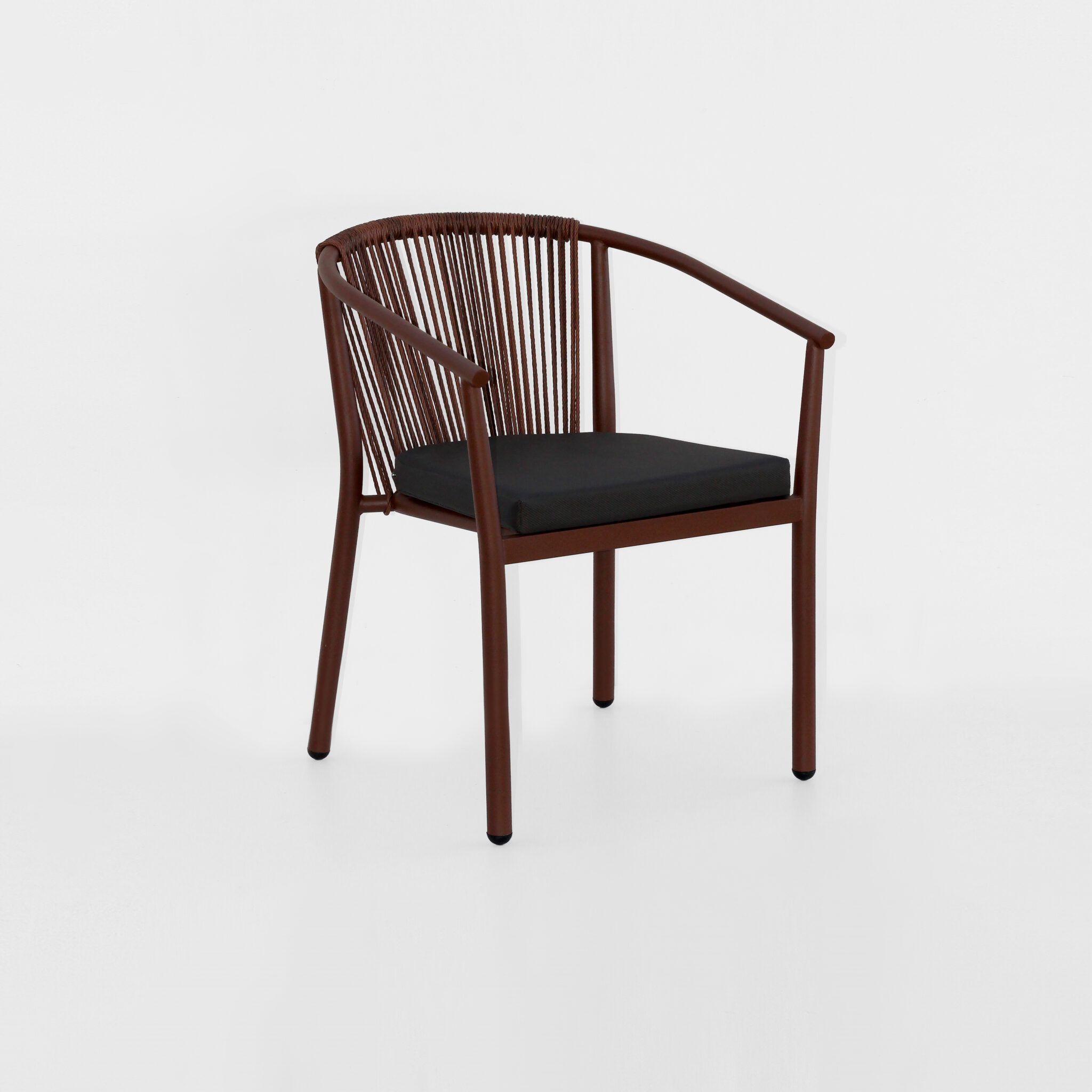 Réf : F121 Le fauteuil MYKONOS est spécialement conçu pour aménager les terrasses de restaurants et les espaces extérieurs. Résistant aux intempéries, il s'impose comme un allié idéal pour vos moments de détente en plein air. Son design associe une structure en aluminium, un tressage en corde polyester et des coussins d'assise confortables. Le tressage, à la fois dense et léger, confère une sensation de légèreté et un aspect accueillant, rappelant un nid douillet où l'on peut se relaxer en toute tranquillité.