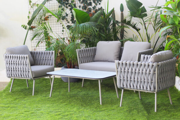 - Salon composé d’un canapé 2 places PORTO LOUNGE, d’une table basse PORTO, de 2 fauteuils PORTO LOUNGE,